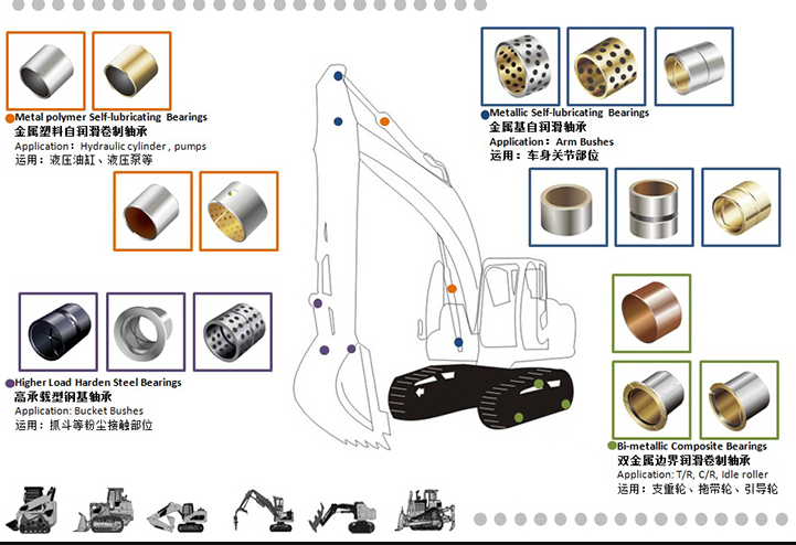 自润滑轴承产品已供应在底盘行走机构、车身件、液压元件等各个部件上。。。。。。。包括双金属界线润滑卷制轴承、金属基自润滑轴承和金属塑料 自润滑卷制轴承等。。。。。。。这些轴承质料具有在高承载条件下优异的耐磨性能和抗粉尘性能,,,,,,同时自润滑手艺使得轴承的维护周期大大延伸,,,,,,提高了装备的使用率,,,,,,降低了维护本钱。。。。。。。