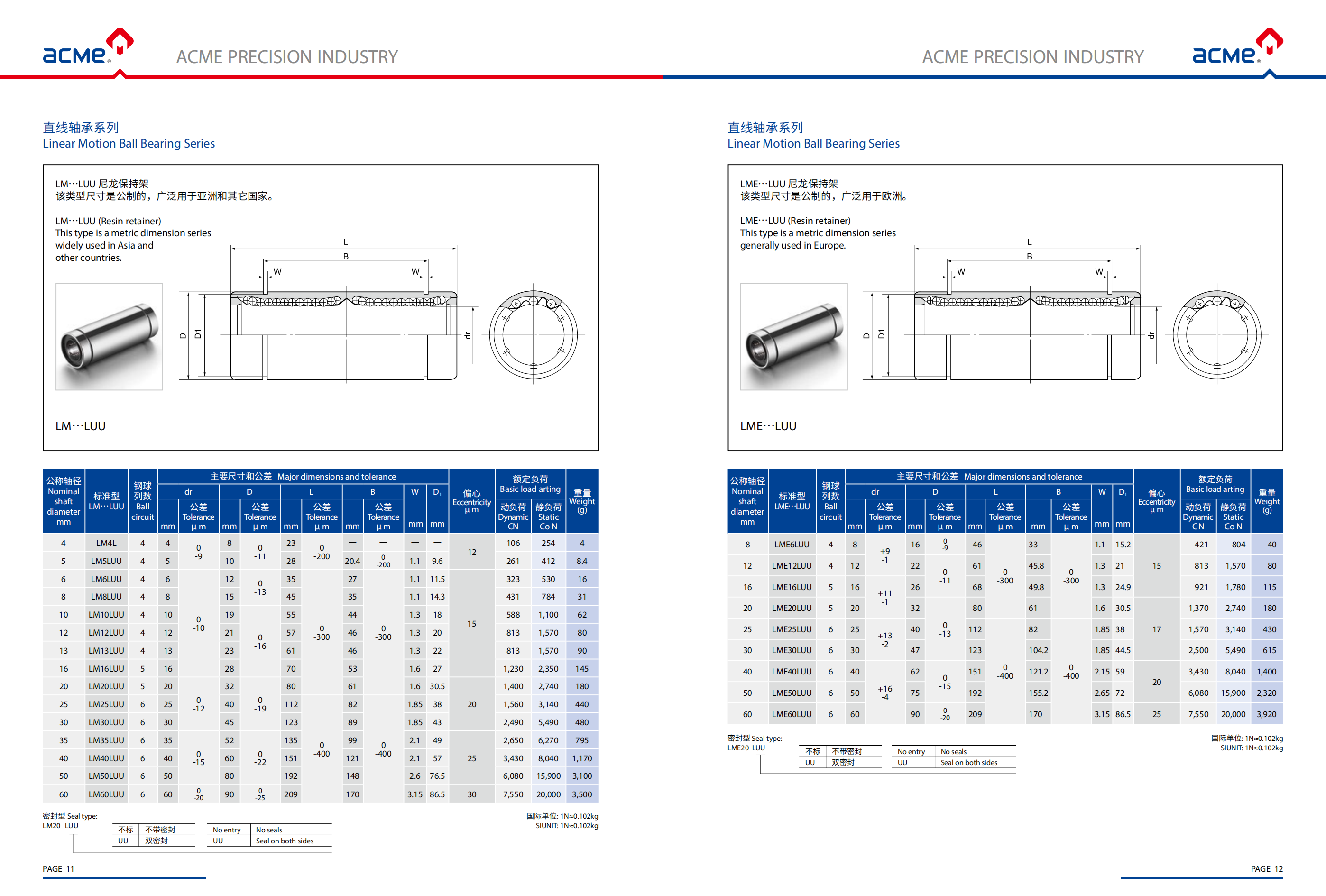 标准直线轴承型面为高精度圆柱面,,,,,与直线轴承同轴度高。。。。。它可以直接装置在轴承上,,,,,用挡圈或压盖牢靠。。。。。装置简朴、利便,,,,,适用规模广。。。。。